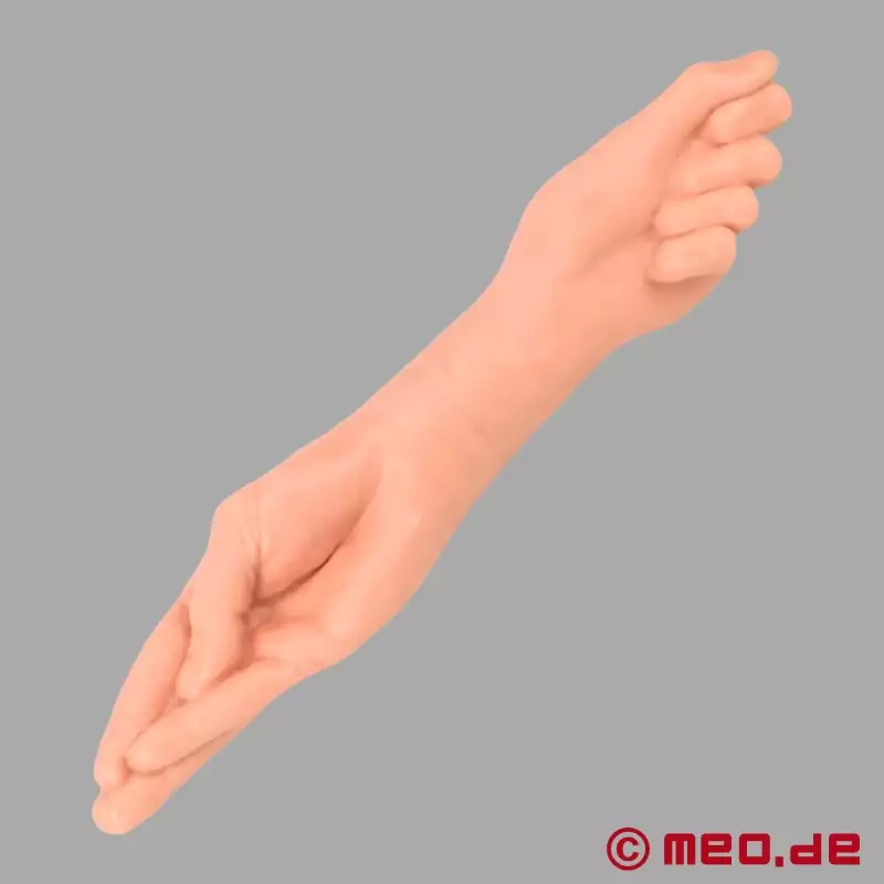 Usa uma quantidade generosa de um dos nossos lubrificantes híbridos de alta qualidade, como o GloryHole® ou o ManCunt™. Começa com a forma estreita da mão e insere o dildo lenta e cuidadosamente. Leva o tempo necessário para preparares o teu corpo para o alongamento anal ou vaginal. Quando estiveres pronto, podes passar para a segunda mão, o punho cerrado. Oferece-te a máxima plenitude e uma sensação incomparavelmente intensa.