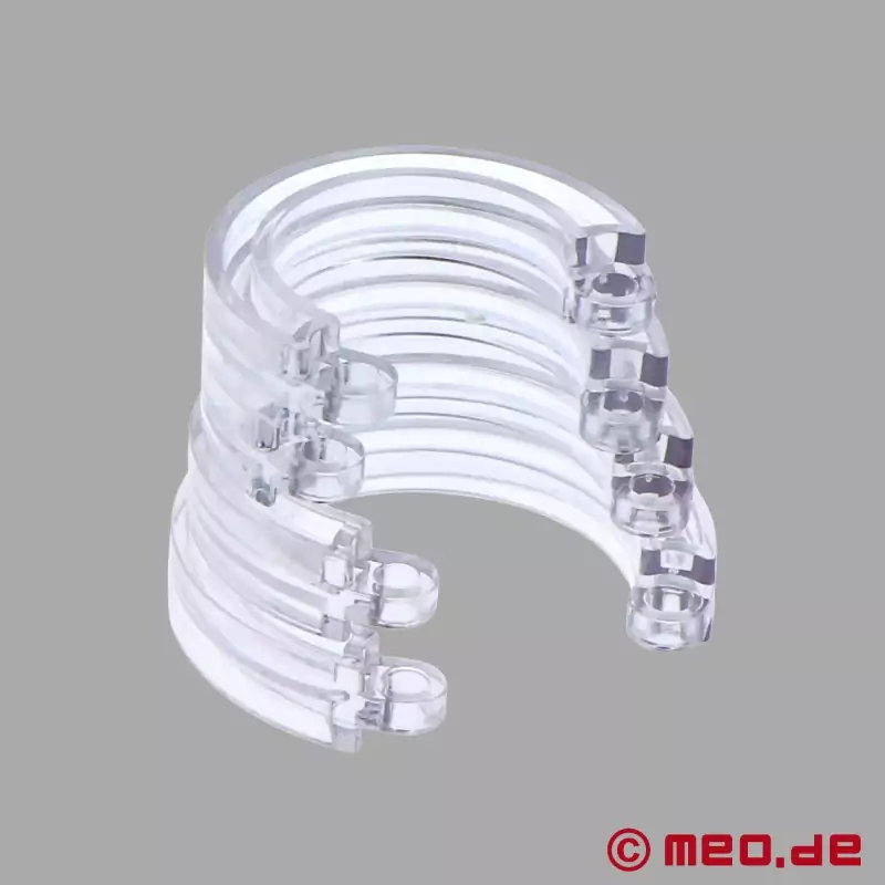 O VoltLock™ contém cinco anéis para o pénis de diferentes tamanhos e espaçadores, para que se ajuste anatomicamente de forma perfeita e segura. Depois de colocares a jaula e a prenderes com o cadeado ou com os selos de segurança numerados, é impossível escapares. Agora ativa o modo elétrico - e o teu parceiro submisso tremerá involuntariamente a cada impulso. Ele está completamente à tua mercê e sob o teu total controlo.