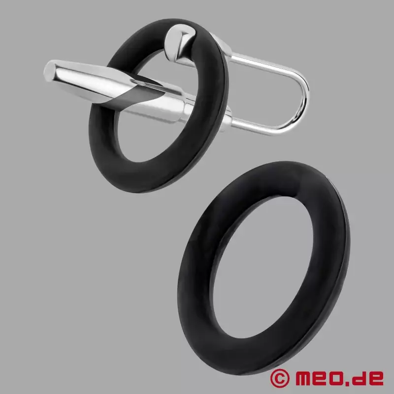 O OrgasmLock™ oferece uma combinação única de penetração uretral e um anel apertado para a glande para uma estimulação inesquecível. O OrgasmLock™ está equipado com um anel de silicone flexível para a glande que proporciona uma fixação segura e pode ser facilmente substituído, dependendo do tamanho do pénis. O resultado: uma glande extremamente firme e sensível e uma sensação de uso que garante uma excitação duradoura. O anel de fixação é feito de silicone, ao qual está ligado um suporte móvel especial com um penis plug de 8 mm de espessura. O anel de silicone apertado é colocado diretamente sob a glande e o penis plug é inserido no pénis. Desta forma, a glande fica extremamente firme e sensível e a sensação de uso torna-se um eterno tremor orgástico!