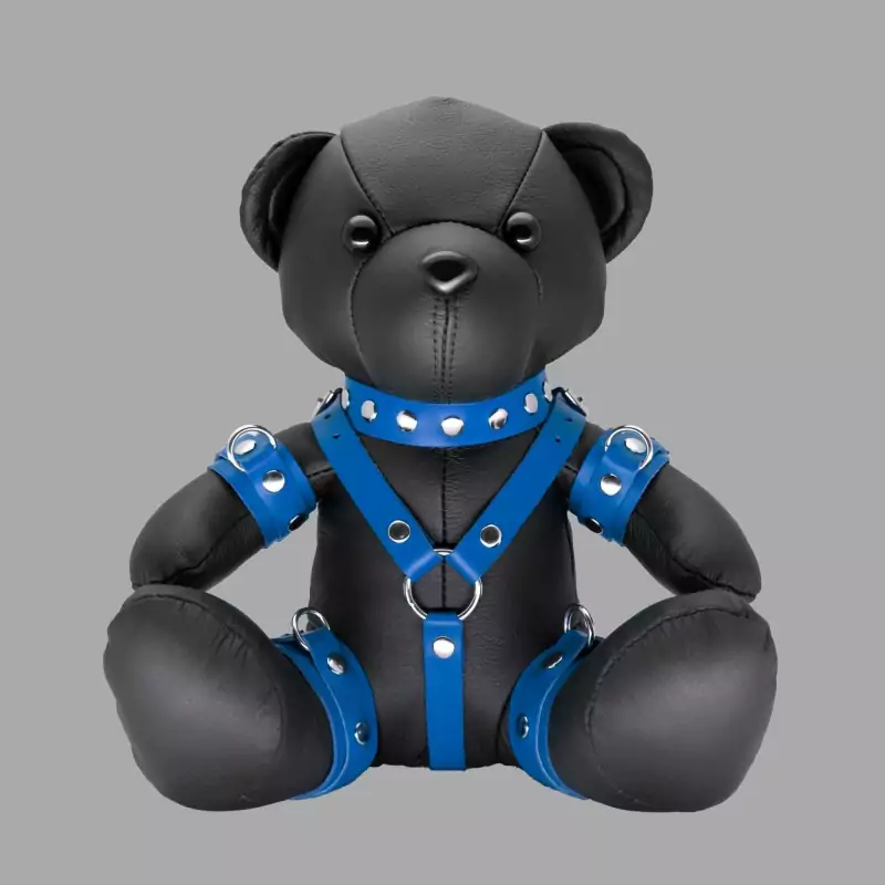 Calmo, dedicado - e completamente teu. O Blue Benny pode parecer tímido, mas está sempre pronto para te servir. É perfeito para os teus cuidados posteriores, intimidade profunda e momentos BDSM intensos e tranquilos. Este ursinho BDSM preto feito de couro genuíno é um companheiro original, bonito e fofo que fará os corações dos fãs de BDSM baterem mais rápido. O ursinho está completamente vestido com equipamento BDSM e é um acessório e um presente original.