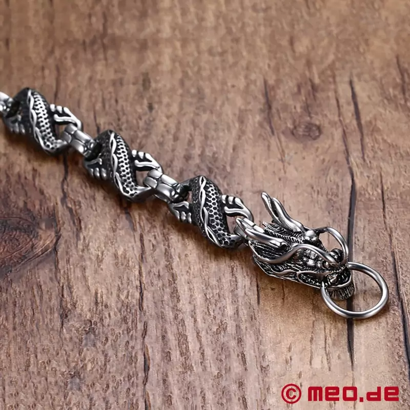 A pulseira para homem em aço inoxidável da MEO® reinterpreta completamente um símbolo da mitologia do Extremo Oriente, o dragão chinês, e combina-o com o espírito de liberdade: o resultado é uma expressiva peça de joalharia BDSM que impressiona não só pelo seu tamanho impressionante, mas também pelo seu design inovador e significado místico. O fecho em forma de cabeça de dragão não é apenas bonito, mas também muito prático e fácil de usar. Uma pulseira deslumbrante que vais apreciar durante muitos anos.