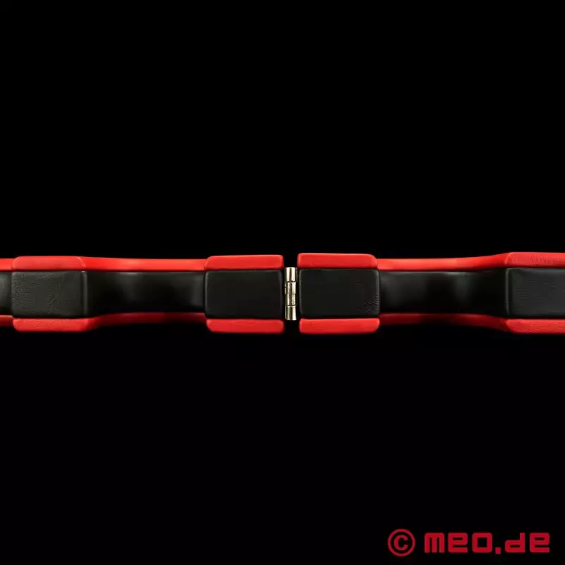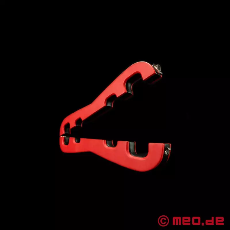 O pelourinho pode ser aberto de um lado através de uma dobradiça. Depois de dobrado, pode ser fechado com um cadeado ou com o nosso cadeado digital MEOBOND ® para evitar a abertura não autorizada. Com este pelourinho, o parceiro submisso é forçado a colocar-se na posição desejada sem compromisso. O pelourinho bloqueável garante uma fixação segura da qual não podes escapar - o melhor pré-requisito para tratamentos agradáveis e jogos desagradáveis durante uma sessão BDSM.