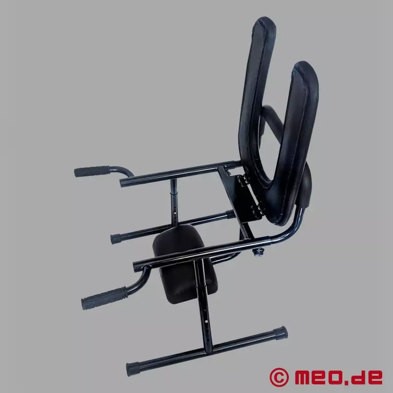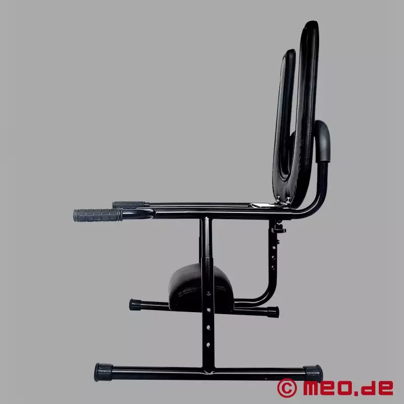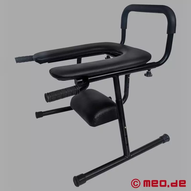 Esta excitante peça de mobiliário BDSM é particularmente fácil de montar, muito estável e com um peso de apenas 8,5 kg, um verdadeiro peso leve. O apoio de cabeça e a altura do assento são facilmente ajustáveis com pinos de pressão, enquanto o encosto ajustável tem um acolchoamento agradável para maior conforto. Equipada com pegas emborrachadas, esta cadeira BDSM permite-te agarrar tudo com firmeza quando se trata de usar o teu escravo. As duas pegas servem de pontos de apoio para empurrares para baixo ou para cima o escravo ou o mestre. A cadeira BDSM oferece-te estabilidade e um posicionamento perfeito para a pessoa que está por baixo. O assento da sanita pode até ser movido para cima e para baixo para um prazer ainda mais intenso.