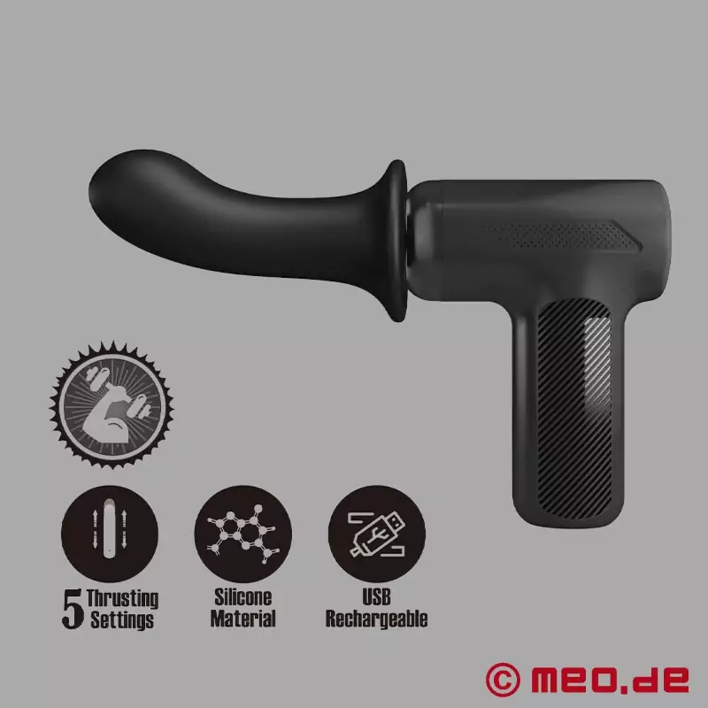 O PREPMASTER™ é basicamente nada mais do que uma máquina de sexo portátil e prática - só que mais compacta, menos visível e muito mais fácil de usar. Com o seu potente motor de impulso, pega ergonómica e acessórios de silicone intercambiáveis, oferece tudo o que esperas de uma verdadeira máquina de sexo: penetração profunda, movimentos suaves e repetições poderosas. Quer estejas em viagem, no chuveiro ou num sling - o PREPMASTER™ está sempre pronto.