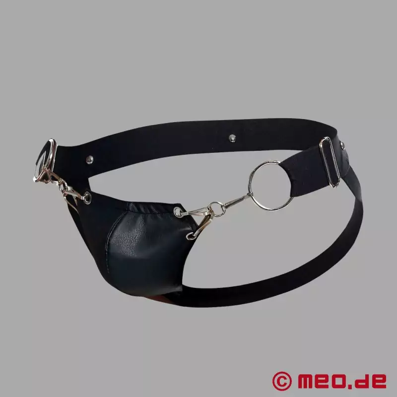 Este jockstrap sexy para homem apresenta um design erótico com recortes que expõe totalmente o teu rabo. As tiras curvas em pele sintética enquadram perfeitamente o teu rabo e garantem uma visibilidade máxima, o que dificilmente poderia ser mais sedutor. Os anéis de metal nas laterais dão ao jockstrap um toque fetichista sexy - ideal para uma sessão BDSM, como uma roupa para a noite ou para uma selfie autoconfiante no Instagram.