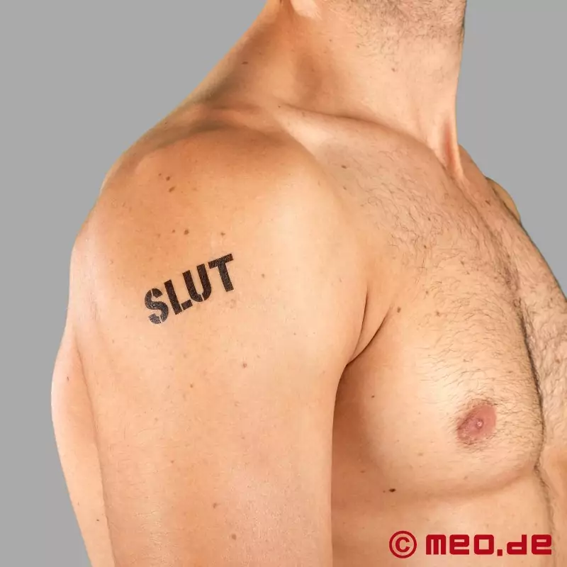 Quer se trate de uma tatuagem SLAVE, PIG, BITCH ou SLUT - com o nosso prático conjunto, damos-te o aspeto de tatuagem temporária para um prazer duradouro! Até podes usar o nosso mundialmente famoso logótipo MEO como tatuagem temporária!