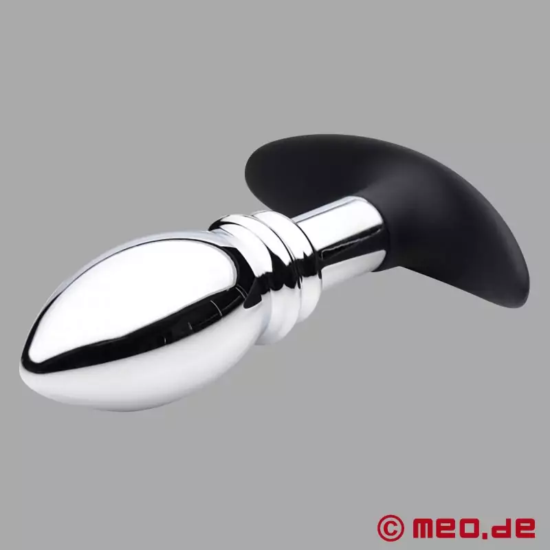 O corpo metálico (butt plug) é feito de alumínio sólido e polido à mão e está ligado a uma base de silicone flexível. Assim, podes desfrutar das vantagens dos dois mundos: A sensação de estar completamente cheio e desfrutar do peso dentro de ti, mas ao mesmo tempo confiar na base flexível para se sugar entre as tuas nádegas para um prazer seguro e confortável.