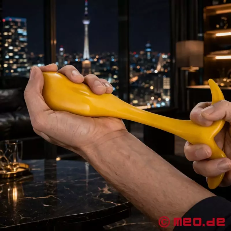 O plug anal amarelo é feito de silicone de alta qualidade com uma superfície aveludada e macia. O material é agradável à pele, é dimensionalmente estável e ao mesmo tempo suficientemente flexível para permitir uma inserção confortável. O resultado é um plug anal que oferece tanto aos principiantes como aos utilizadores avançados uma sensação intensa mas controlada.