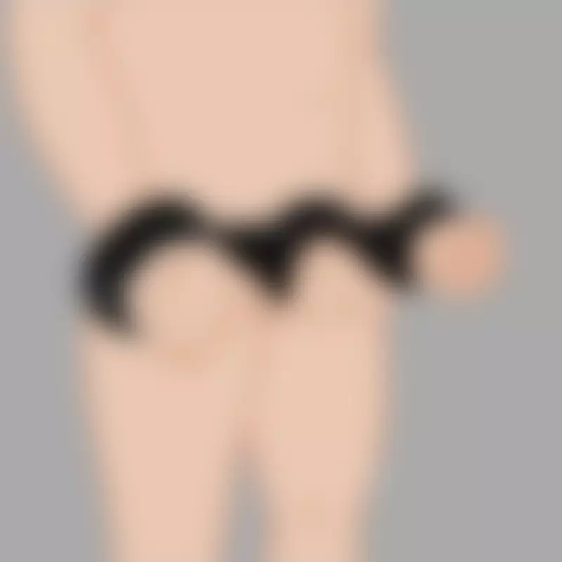 Пиллория соединяет обе руки пассивного мужчины (левую и правую) с его гениталиями (посередине) и тем самым делает его абсолютно неспособным к действиям.