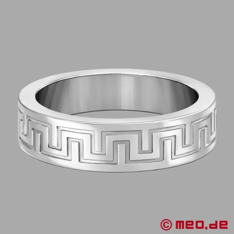 Это роскошное кольцо для члена из нержавеющей стали поддерживает эрекцию, улучшает внешний вид и выглядит как ювелирное украшение. Непрерывный узор "La Greca", также известный как "греческий ключ", точно выгравирован лазером и придает кольцу Cock Ring культовый вид.
