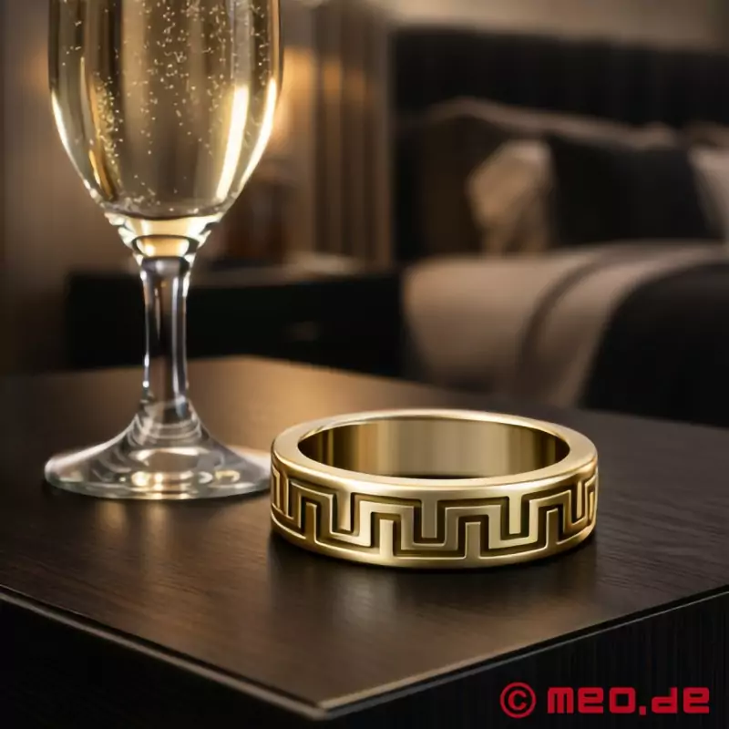 Узор "Ла Грека" - один из самых известных орнаментов Древней Греции, который и сегодня можно встретить в архитектуре, искусстве и дизайне. Его характеризует перекрещивающаяся прямоугольная полоса линий - мощная, геометричная и неподвластная времени. В отделке золотого цвета кольцо Cock Ring выглядит особенно роскошно, элегантно и презентабельно.