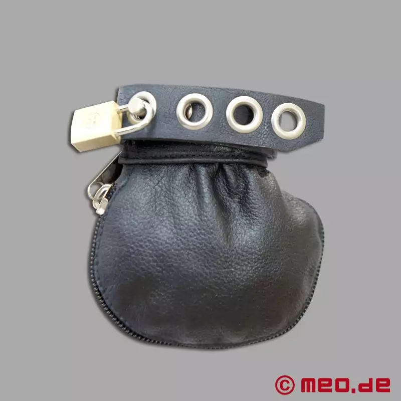 Für den devoten Mann, eines der gemeinsten Produkte. Für die dominante Herrin oder den strengen Master ein unverzichtbares Werkzeug zur effektiven Erziehung. Die Strafvorrichtung besteht aus einem doppellagigem Lederbeutel, den wir nicht nur mit einem Reiss- und Klettverschluss sowie einem abschließbaren Gurt sondern auch mit SCHARFEN SPIKES für die „extra Stimulation“ versehen haben.