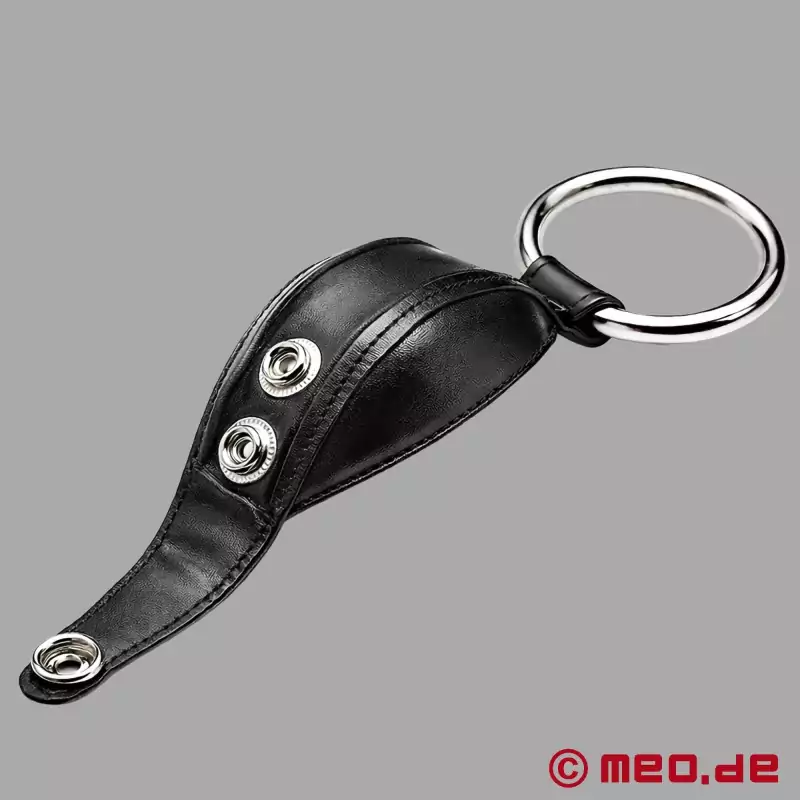 CockPrison™ действует как "смирительная рубашка" для гениталий. Массивное кольцо для члена из нержавеющей стали сначала надевается на пенис и яички и сразу же создает контролируемый застой крови, что повышает чувствительность. Затем кожаный рукав - собственно "смирительная рубашка" - закрывается, надежно и плотно обхватывая пенис.