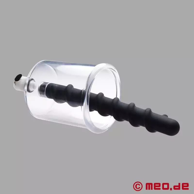 Hur man använder den: Fukta analdildon i silikon och änden på vakuumcylindern med rikligt med visköst glidmedel, t.ex. Aquameo. Tryck in analdildon i anus tills cylinderns nedre ände trycker mot anus, och nu är det dags att pumpa!
