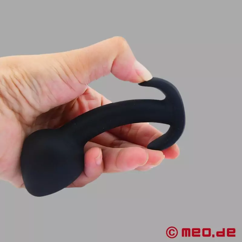 Tack vare det runda, tjocka huvudet uppnås en absolut fyllnadskänsla så snart prostatastimulatorn förs in. Ju större prostatastimulatorn är och ju djupare den tränger in, desto mer intensiv blir stimuleringen, eftersom den trycker direkt på din Pointer of pleasure! Den mycket speciella formen garanterar en säker passform; den anatomiskt formade basen säkerställer att inte bara perineum stimuleras ytterligare, utan också att du kan bära den bekvämt och diskret under dina kläder. Även sittande blir ett hisnande hett analnöje.