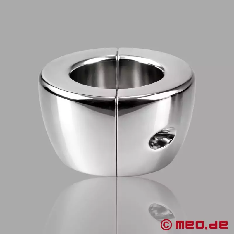 Solid, tung och utformad för en tydligt märkbar sträckning av pungen. BellLock™ från MEO® är en ball stretcher i rostfritt stål med en klockformad design. Dess tunga vikt, ergonomiska form och högkvalitativa, tvådelade finish skapar en intensiv, mycket direkt dragande effekt och en exceptionellt närvarande känsla.