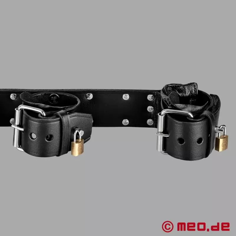 BDSM-fans världen över uppskattar äkta läder från MEO® för dess lukt, utseende och känsla. Valet av material och utförande är avgörande för att en bondageprodukt som dessa kombinerade hand- och fotbojor ska vara tillförlitlig även efter långvarig användning. MEO® lägger därför stor vikt vid noggrant utvalda lädertyper och tillverkning enligt tysk sadelmakartradition - för ett utseende som dominerar och en kvalitet som du kan känna omedelbart.