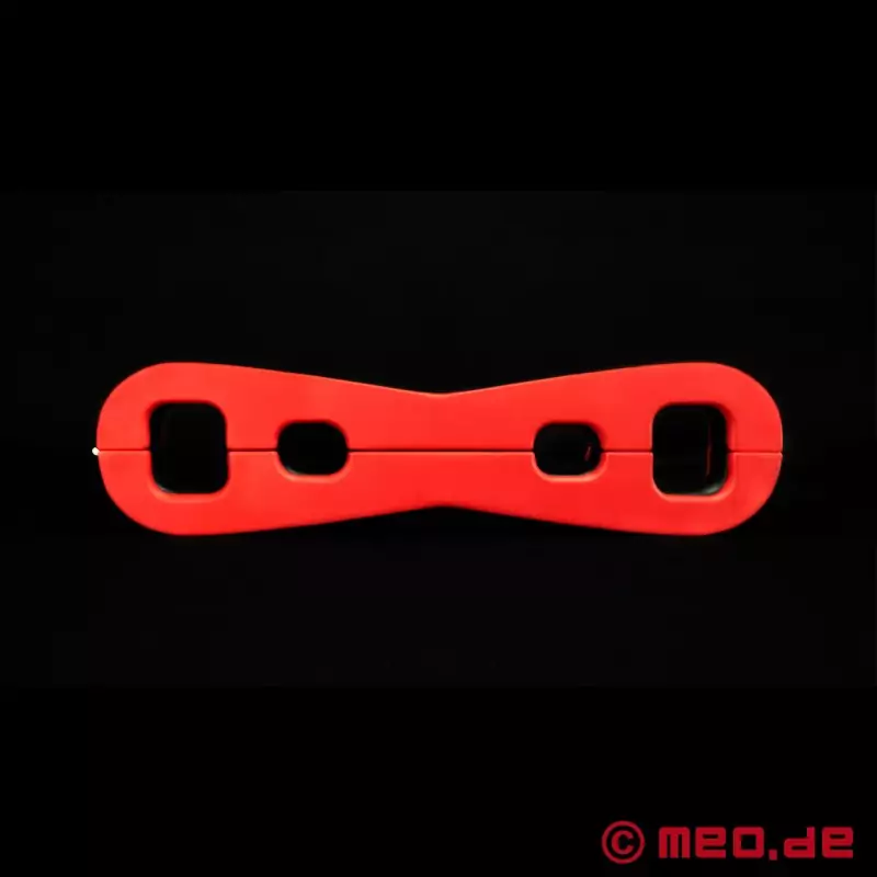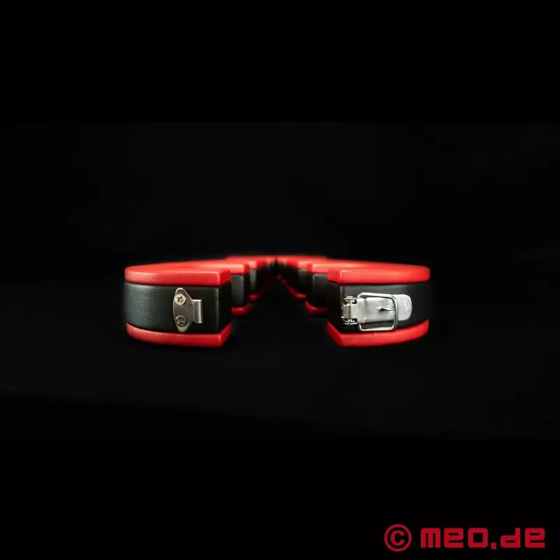 Pillory kan öppnas på ena sidan med hjälp av ett gångjärn. När den är hopfälld igen kan den låsas med ett hänglås eller vårt digitala tidslås MEOBOND ® för att förhindra obehörig öppning. Med den här pelaren tvingas den undergivna partnern kompromisslöst in i önskad position. Den låsbara pelaren garanterar en säker fixering som det inte går att fly ifrån - den bästa förutsättningen för njutbara behandlingar och otäcka lekar under en BDSM-session.