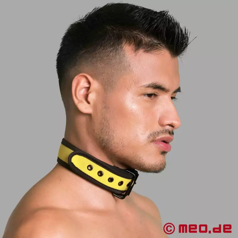 Vårt bondagehalsband i svart och gult är inte bara en populär accessoar inom BDSM- och fetischscenen. Den coola designen passar inte bara perfekt till klubbkläder och alla andra fetischkläder, utan ser också bra ut i vardagen.
