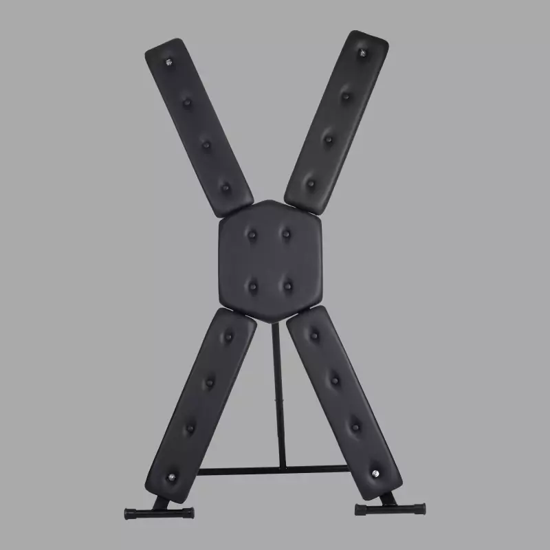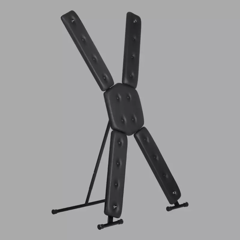 Vårt Andreaskors är fristående, relativt lätt, enkelt att montera och justerbart i vinkel! Trots att det är tillverkat av robust stål och trä och vadderat med högkvalitativt skum och veganskt pelle väger det bara 21,5 kg och kan därför enkelt flyttas eller till och med tas med! Det finns en fästpunkt för fotbojor och handbojor i vardera änden av Andreaskorset.