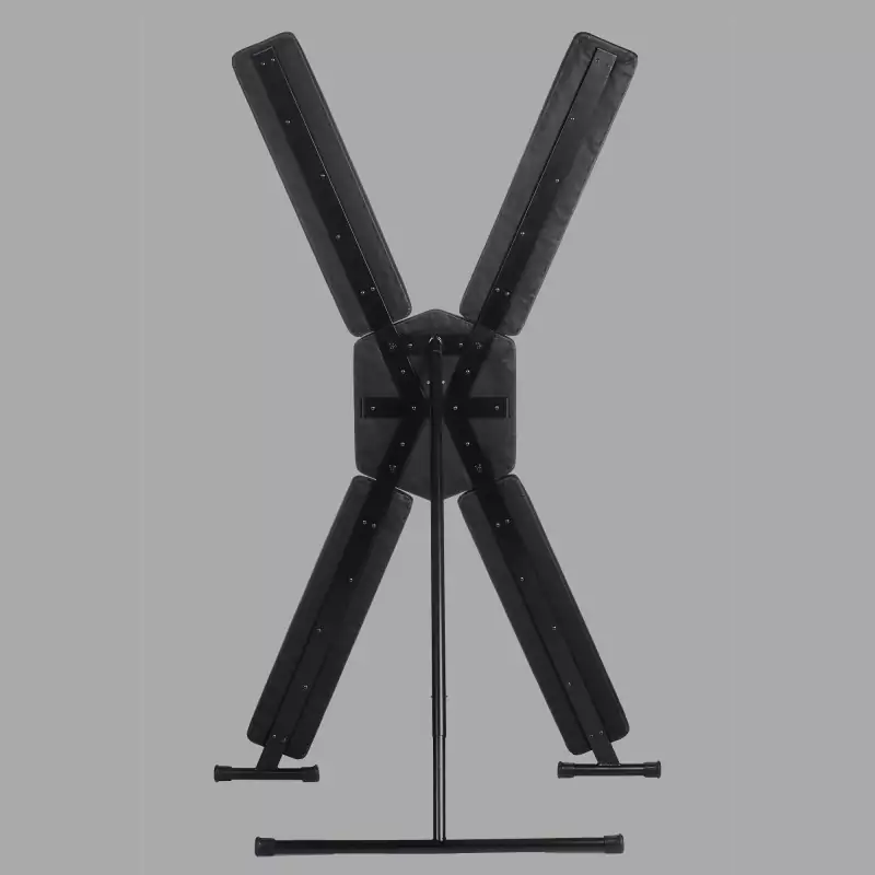 Vårt Andreaskors är fristående, lätt att montera och justerbart i vinkel! Trots att det är tillverkat av stål och trä och vadderat med skum och pelle väger det bara 21,5 kg och kan därför lätt transporteras och diskret stuvas undan efter användning.