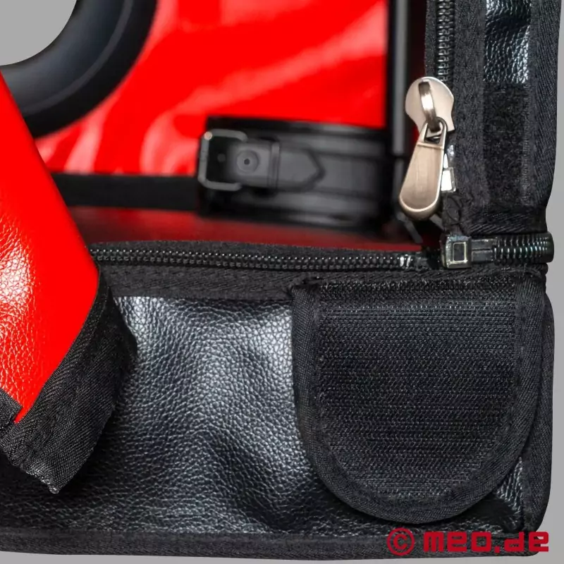 En mjuk golvmatta och LED-belysning ger extra komfort, medan de medföljande fotbojorna och fotbojorna (ett par vardera) sitter säkert tack vare den mjuka stoppningen och spännet. Fotbojorna och handbojorna kan placeras flexibelt inuti så att du kan bestämma hur din Sub ska presenteras.