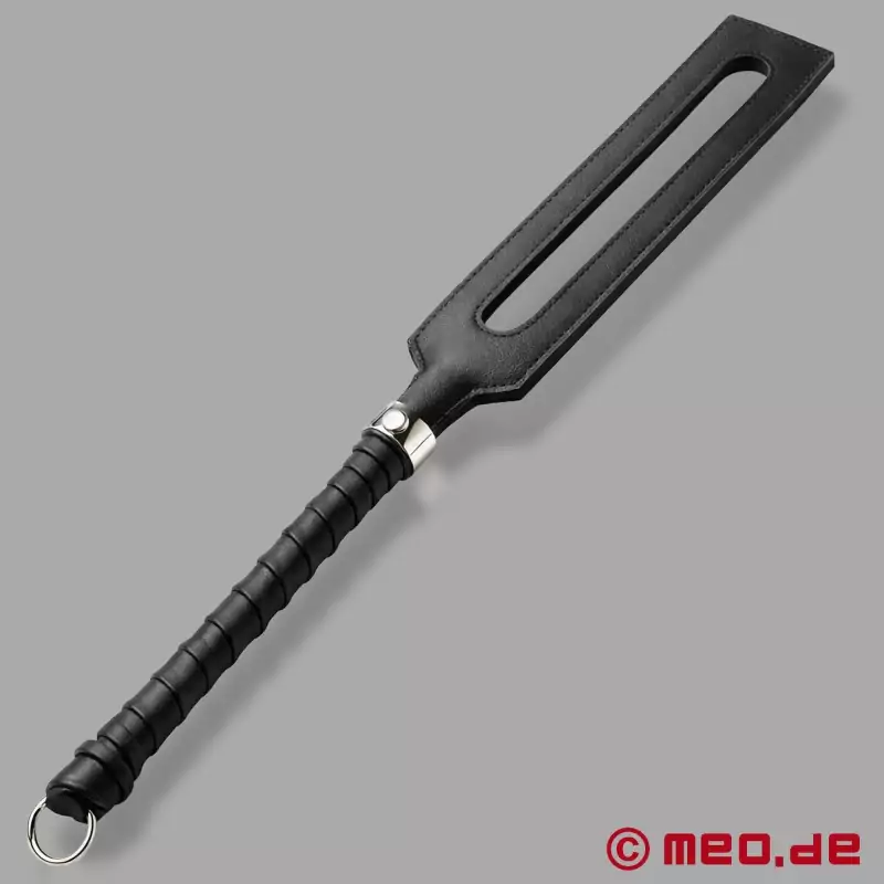 Vår BDSM paddle i läder är extremt slitstark, av högsta kvalitet och långlivad - även vid intensiv användning. Den rektangulära urtagningen i BDSM paddelns slagyta minskar luftmotståndet och ger därmed - slag för slag - smärtsamma resultat vid spanking. Detta innebär att en intensiv effekt kan uppnås med liten ansträngning.