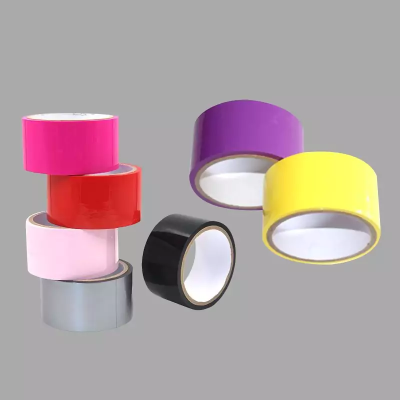 Vår bondage-tejp finns i svart, röd, rosa, rosa, silver, lila och gul.