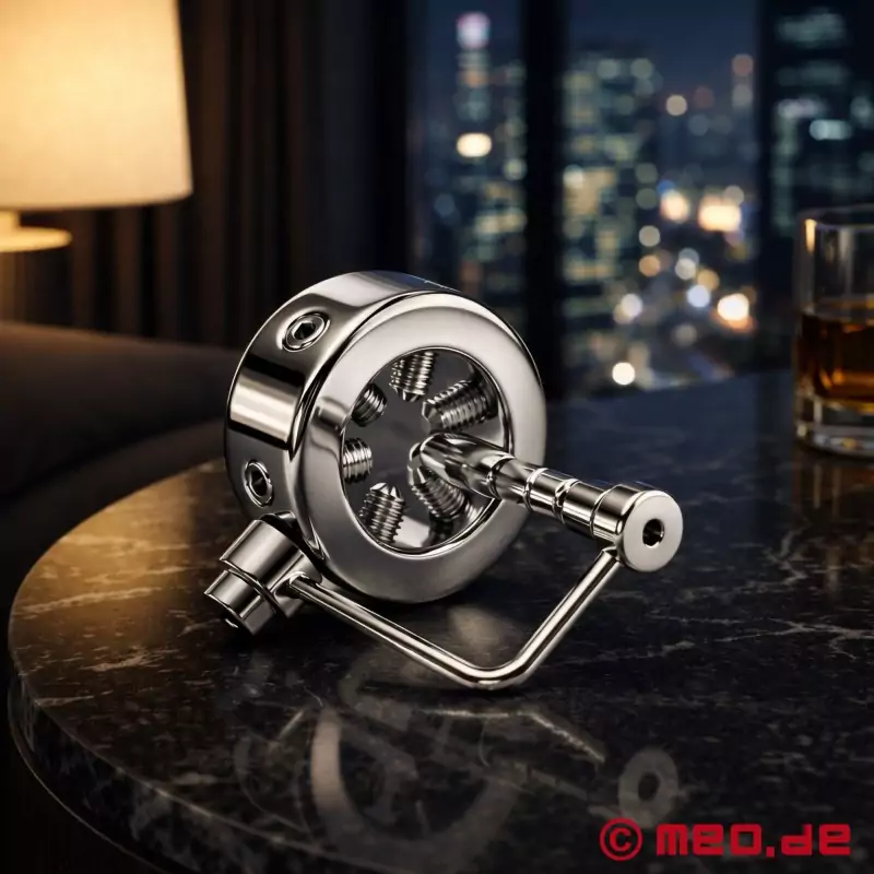 "Masterpiece" från Dr. Sado® har ett passande namn eftersom det inte bara är en ollonring, utan en vågad kombination av olika BDSM-produkter. Ollonringen har sex dolda skruvar eller spikar som säkerställer en säker fixering under ollonet och samtidigt ger stark, kontrollerad stimulering. Denna design ger inte bara en stark visuell effekt, utan ger också en exceptionellt intensiv känsla.