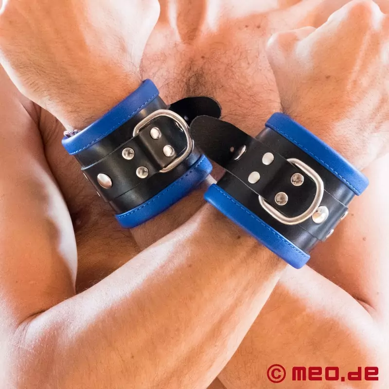 Fördjupa dig i fängslande BDSM-ögonblick med de vadderade, svarta och blå handbojorna i läder från Distinct™-kollektionen från MEO® Germany. Förstklassiga pälsar, mästerligt utförande och maximal komfort skapar tillsammans säkra och spännande bondageupplevelser. Den eleganta kombinationen av svart och blått står för tydlig och direkt kommunikation av dina önskningar och är därför idealisk för BDSM-sessioner fulla av tillit och njutning.