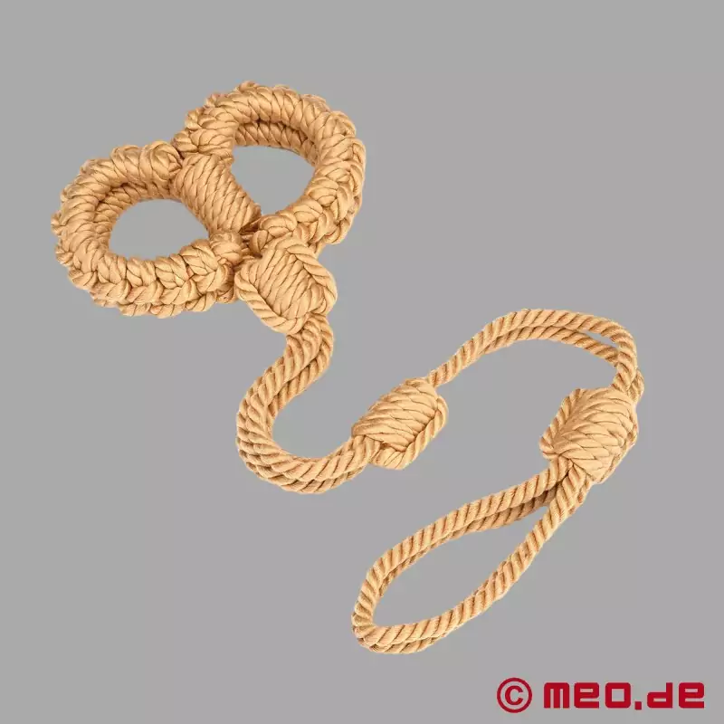 Shibari är den traditionella japanska konsten att knyta rep. Låter komplicerat, men det är det. Det är precis därför som produktutvecklarna på MEO ® från Tyskland har samarbetat med de ledande BDSM-experterna i Tokyo och skapat en serie färdiga bondagar som är baserade på Shibari-bondage. Eftersom dessa bondagegrepp redan har tillverkats för hand i Japan kan du komma igång direkt utan att behöva behärska den komplicerade knutteorin.