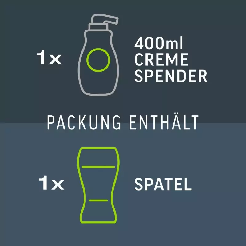 Veet Men Total Pro™ hårborttagningskräm har utvecklats speciellt för behoven hos mäns hud och finns som en 400 ml version i en praktisk dispenser. Den avlägsnar oönskat kroppshår snabbt och effektivt. Krämen ger märkbart slät hud, återfuktar i upp till 24 timmar och möjliggör hårborttagning på överkroppen och benen utan risk för skärsår, vilket kan vara fallet vid rakning.