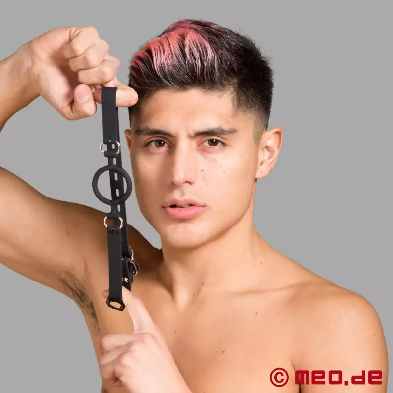 Vår munkavle fästs med en huvudrem som kan justeras i storlek och som vi har försett med ett låsbart spänne. Ett hänglås från MEO ingår i leveransomfattningen. Du kan hitta mer inspiration till bondage restraints i vår BDSM Shop i kategorin Masker & Munkavlar.