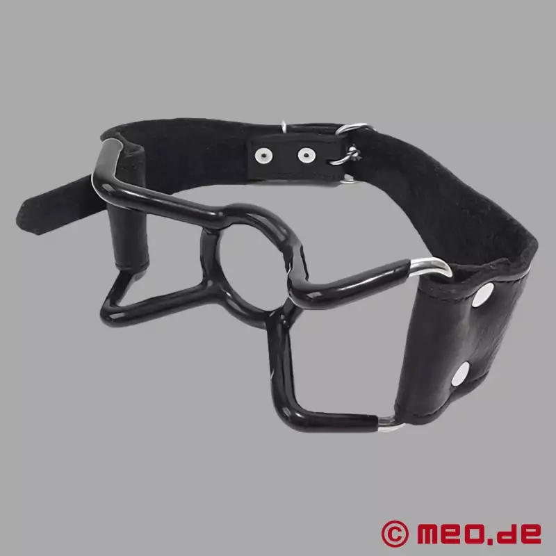 Med den här munkavlen från MEO® förblir munnen öppen så länge du vill. Den belagda metallöppningen med en diameter på 38 mm ger maximal kontroll, medan de robusta metallstängerna och den justerbara läderremmen säkerställer en perfekt passform och absolut fixering. Låsbar och därför absolut rymningssäker - perfekt för alla som gillar kompromisslös kontroll. I kombination med en spandexmask, ett hänglås och vår EZ2SUCK-spray blir det en intensiv BDSM-session för extrema sessioner mellan dominans och underkastelse.