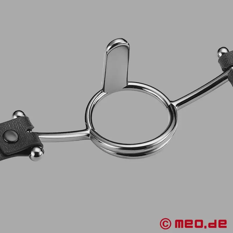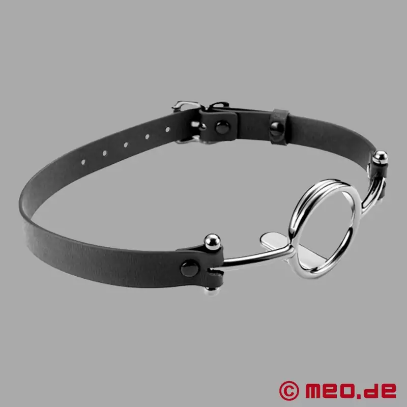 En ring gag eller O-ring gag säkerställer optimal oral åtkomst under bondage. Vid sidan av den klassiska ball gag är ring gag förmodligen den mest populära munkavlen i BDSM-communityt. Och det är knappast förvånande, eftersom MEO ® ring gag öppnar upp för sexiga lekmöjligheter, eftersom partnern är helt oralt tillgänglig. Ringen trycks in bakom tänderna och när läderremmen är fastsatt sitter den så hårt att Sub:en tvingas hålla munnen öppen. Ring gags finns i olika diametrar.