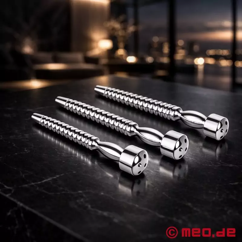 Den koniskt formade kroppen i rostfritt stål är ihålig på insidan och sitter säkert fast i urinröret tack vare en kraftigt rundad specialgänga. Det innebär att pluggen sitter kvar där den ska - även vid intensiv användning, t.ex. under sex med din partner.