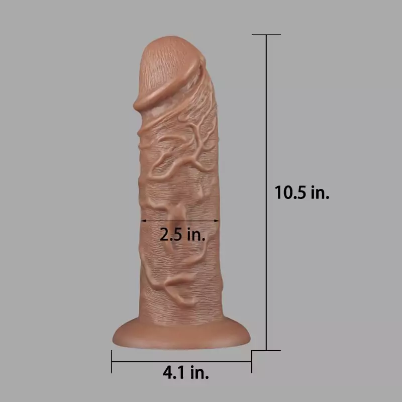 Den här dildon lever upp till sitt namn. Den imponerar med en diameter på 6,3 cm, en total längd på 26,5 cm och ett verklighetstroget utseende i en mörk hudton. Ådrorna, ollonet och den fylliga formen på den här dildon ger en hyperrealistisk penislook och en intensiv känsla vid användning. Tack vare den starka sugkoppen är den idealisk för Solo-Player eller som ett par.