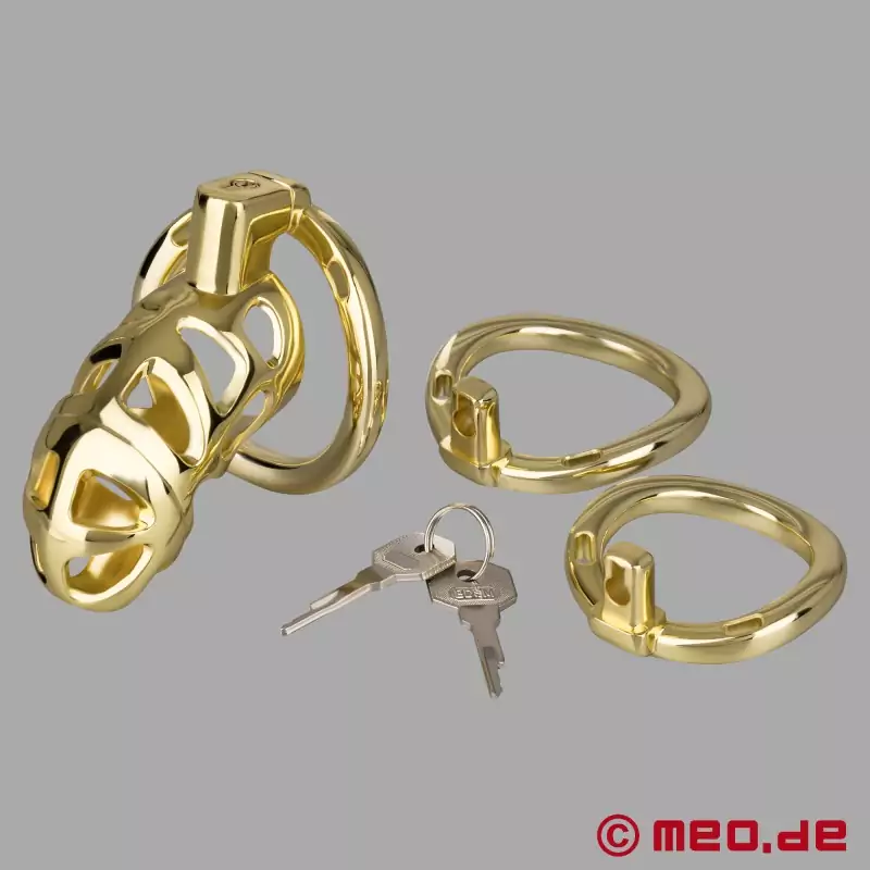 Nopacha AurumLock™ är mer än bara en erotisk accessoar. Det är en lyxig kyskhetsbur för män som värdesätter kontroll, dominans och estetik. Den är tillverkad av högkvalitativ, guldpläterad aluminium och kombinerar en elegant design med funktionell styrka. Även om det ser ut som om det designats för miljardärer eller oligarker är detta manliga kyskhetsbälte lämpligt för alla som tar kyskhet på allvar - oavsett om det är i BDSM-sammanhang, i ett keyholder-partnerskap eller för självdisciplin.