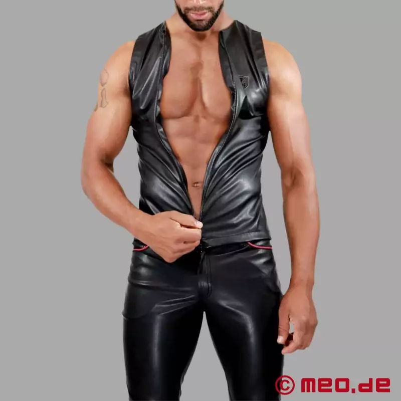 Topp i form! TOF Paris linne framhäver dina muskler på bästa sätt. Den mjuka kvaliteten är imponerande och erbjuder maximal komfort. Detta eleganta linne med dragkedja i fetischstil är ultrasexigt. Det är tillverkat av otroligt naturtroget läderimitation. Den höga kvaliteten på materialet gör skillnaden nästan oigenkännlig vid första anblicken