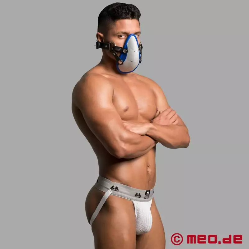 Çorap tıkaç, poppers maske veya jockstrap ağız maskesi olarak da bilinen MEO BDSM ağızlık, derin koruma ve 2 cm genişliğinde, çıkarılabilir deri kayışlara sahip sofistike bir kafa kayışıdır. Başlangıçta futbol veya buz hokeyi gibi sporlarda cinsel organları korumak için kullanılan jockstrap, çıkarılabilir ve bu nedenle çok yönlüdür. Gündüzleri şort veya jockstrap ile giyilebilir ve geceleri ağızlığa entegre edilebilir - yoğun aromalı tıkaç fantezileri için idealdir.
