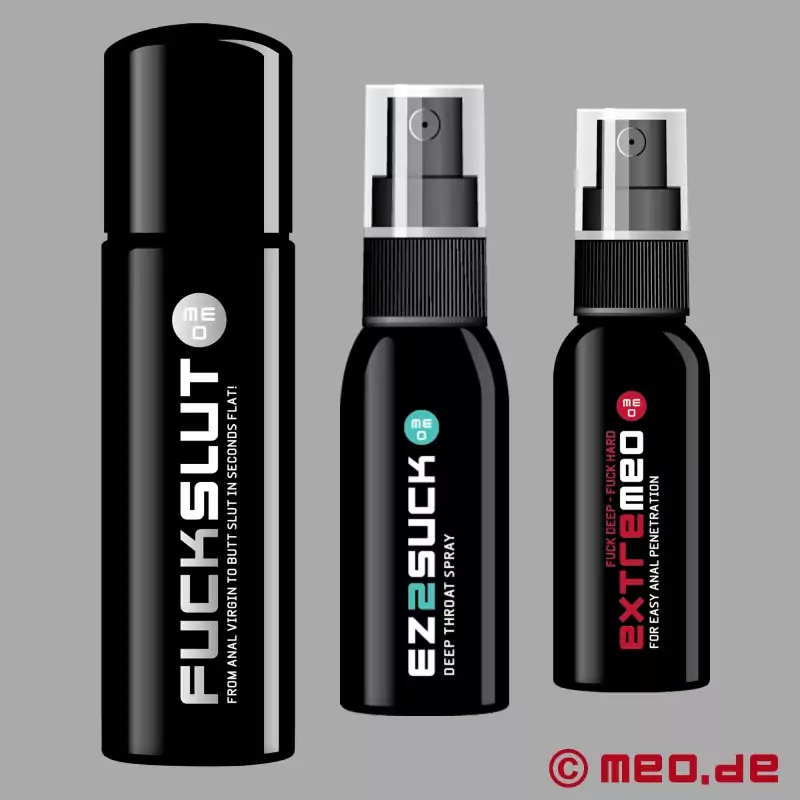 İnanılmaz komple set "All You Can Fuck" size bireysel fiyatlara kıyasla sansasyonel bir fiyat avantajı sunuyor. Ağrısız anal seks için birinci sınıf Anal Relax Spray Extremeo®, devrim niteliğindeki deep throat spreyimiz EZ2SUCK™ ve çığır açan anal kayganlaştırıcımız F*ckSl*t™ içerir.