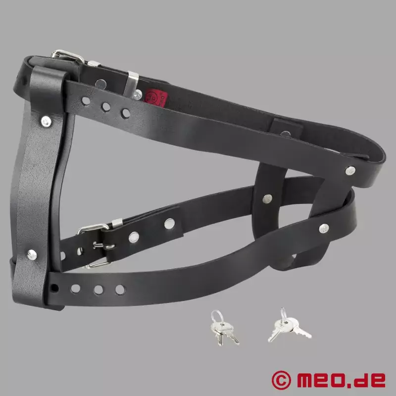Your sub loves the smell of your sneakers? Make him wear it. The Sniff My Sneaker Face Harness by MEO Berlin straps his favorite kink right to his face - tight, secure, and lockable. Slide in a ripe pair of low-tops or high-tops, tighten the leather straps, and watch him melt under the scent. No ropes, no tape, no excuses. With full nose and mouth coverage and hands-free control, this sniffer harness turns your worn sneakers into a full-blown fetish experience. Add socks, poppers, or go raw. He'll sniff until you say stop.