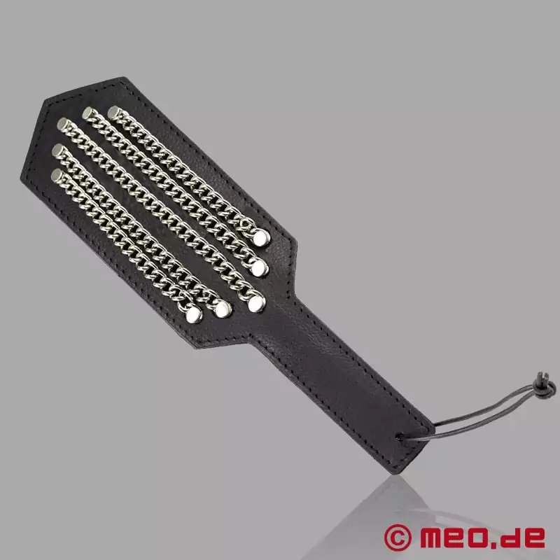 Kalbi zayıf olanlar için değil! Tek vuruşta ayaklarınızın altındaki zemini kaybedin ve yalnızca MEO'nun BDSM küreğinin sunabileceği yoğun, doğrudan hissi yaşayın. Bu sadece başka bir BDSM sextoy değil, kalıcı bir iz bırakacak ceza vermek için hassas bir araçtır. Deri ve çeliğin kombinasyonu ikili bir his yaratır - bir tarafı kalın eyer derisiyle derin, donuk bir vuruş sağlarken, diğer tarafı beş sıra çelik zincirle daha keskin, daha yoğun bir deneyim sunar.