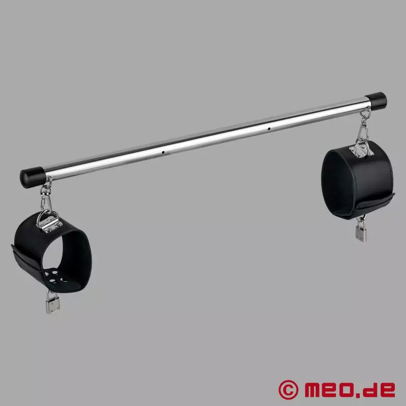 Ayak kelepçesi ile donatılmış ayırıcı çubuğumuz, esaret sırasında hareket özgürlüğünü heyecan verici bir şekilde kısıtlar! Ayırıcı çubuk ile itaatkâr partnerinizi hiç vakit kaybetmeden sabitleyebilir ve fazla çaba harcamadan aşırı esaret pozisyonlarının tadını çıkarabilirsiniz. Metal ayırma çubuğu, BDSM seansınızın erotik veya sert olmasını tercih etmenize bakılmaksızın her macera için kullanılabilir.