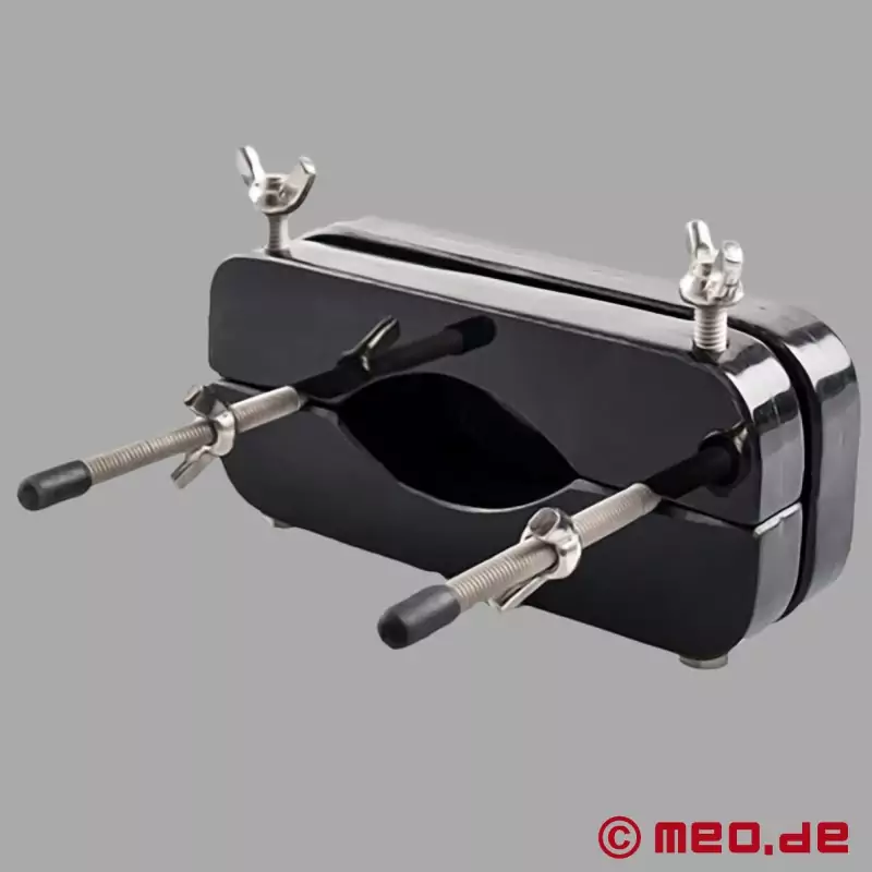 Dr Sado'nun siyah testis presi, bir taban plakası ve sıkıcı görevi gören bir baskı plakasından oluşur. Her iki plaka da hassas testisleri sıkıca birbirine bastırır, böylece yoğun orgazmlar garanti edilir. Basınç, iki kanat vidası ile ayrı ayrı ayarlanabilir! Her dönüş etkiyi ve zevki artırır.