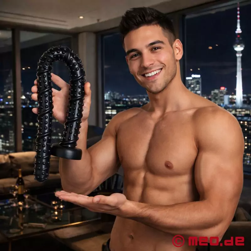 Dieses geniale Toy ist super groß und besteht aus einem richtig tollen Material, das sich sehr gut biegen lässt. Der Durchmesser wird ein bisschen größer, je tiefer man geht, was perfekt ist, um damit zu trainieren, ohne dass die Breite zum Problem wird. Der Saugnapf hält bombenfest, damit du dich voll und ganz auf dein Training konzentrieren kannst.