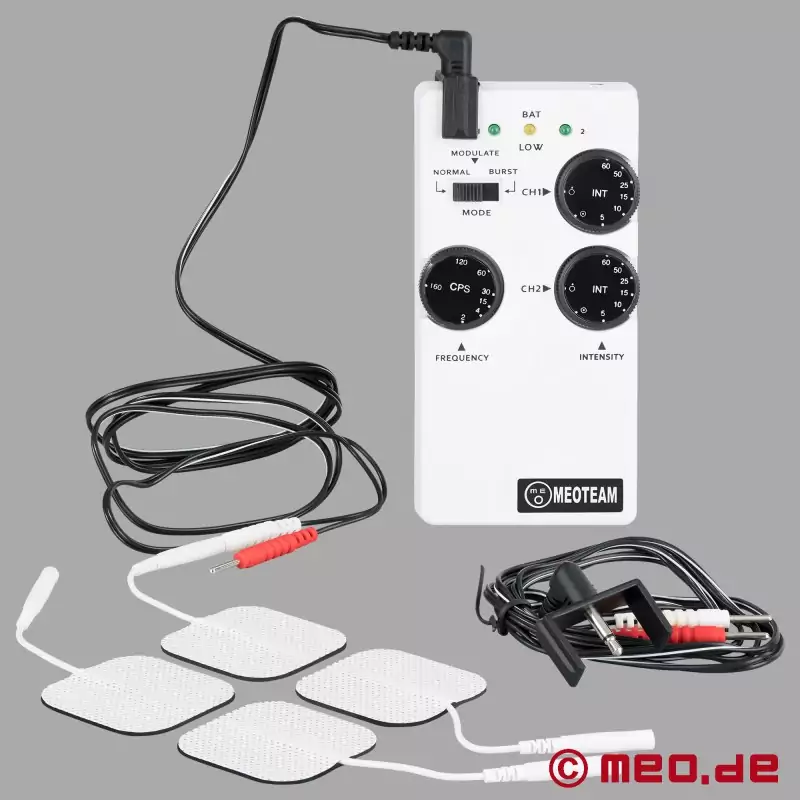 MEO®'dan SexBox™ ile hayatınızın en iyi seksini yaşayın. Bu profesyonel elektrostimülasyon cihazı, kanıtlanmış TENS teknolojisine dayanır ve sizin için yepyeni bir zevk dünyasının kapılarını açar - özellikle BDSM seansı sırasında.