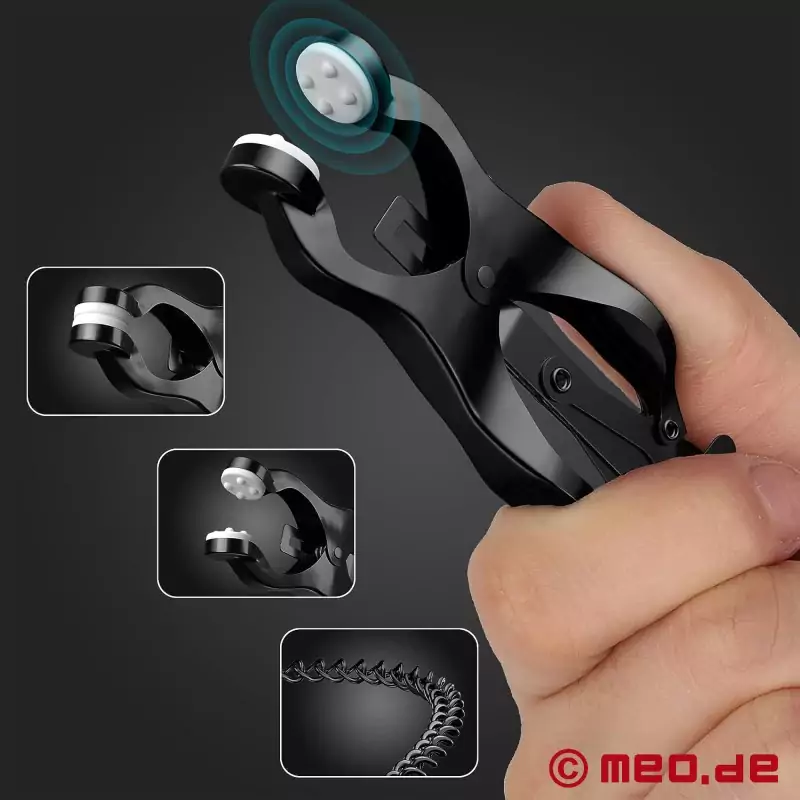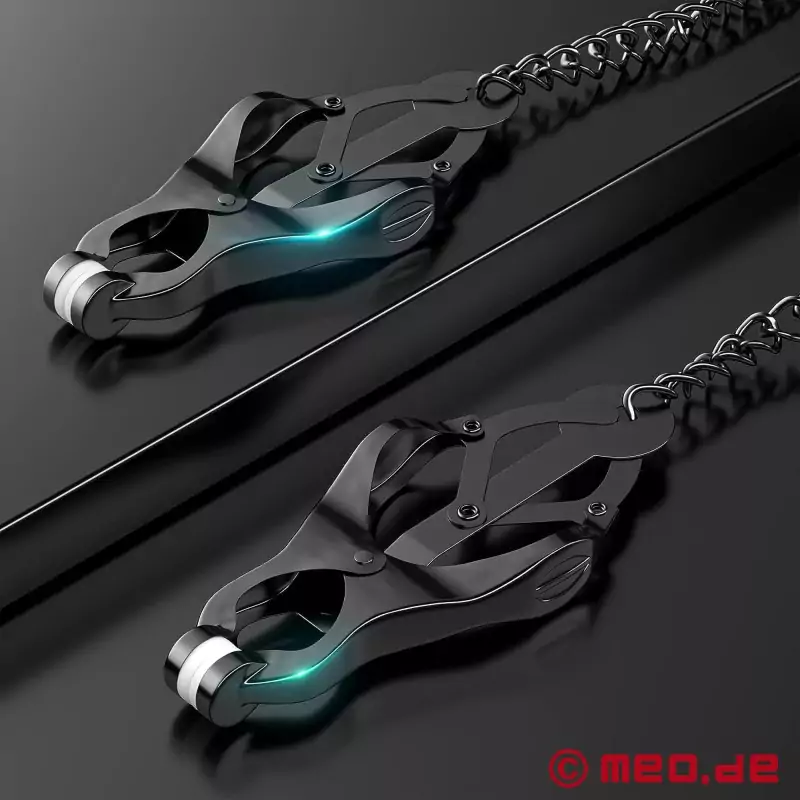 Japon meme kelepçeleri olarak da bilinen MEO ® 'nun lüks Clover Clamps vücudun birçok yerine takılabilir. Yoğun stimülasyon için BDSM kelepçelerimiz meme uçlarında, klitoriste veya skrotumda kullanılabilir. Hayal gücünüzün sınırı yok.