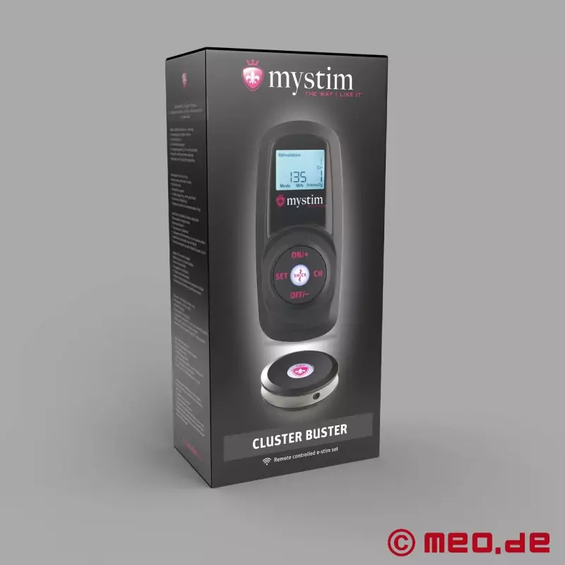 Cluster Buster, güçlü bir uzaktan kumanda ve bir alıcıdan oluşan kablosuz bağlantılı dijital bir elektrostimülasyon cihazıdır. Her biri ayrı ayrı programlanabilen sekiz adede kadar alıcı aynı anda kontrol edilebilir. Bu, sadece kendi zevkinizi değil, aynı zamanda itaatkâr partnerinizin zevkini de kontrol etmenizi sağlar - mutlak kontrol için. "Şok Düğmesi "ne bir kez basmak maksimum yoğunluğu etkinleştirir.