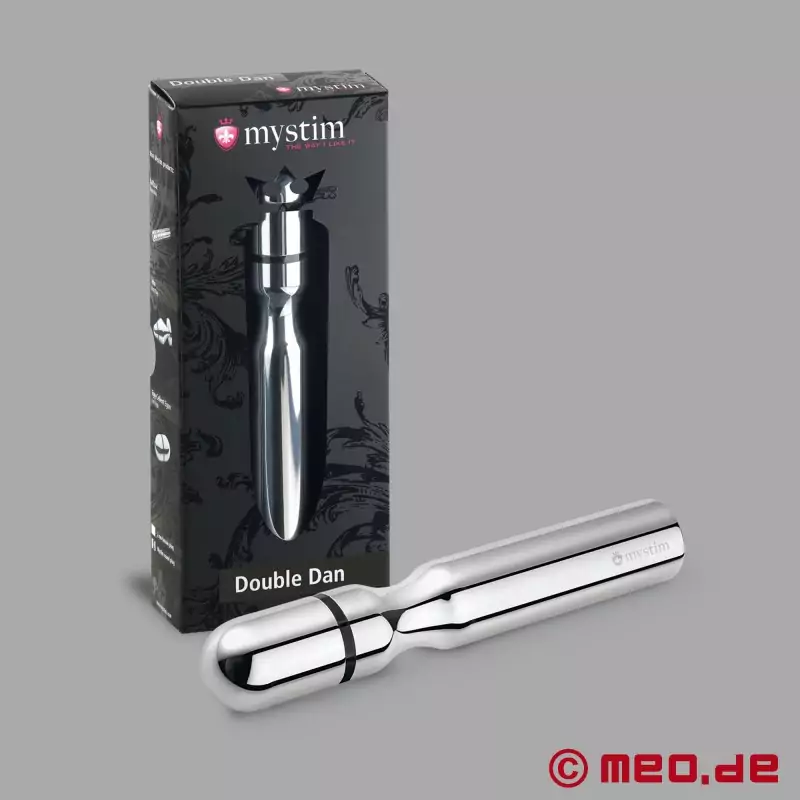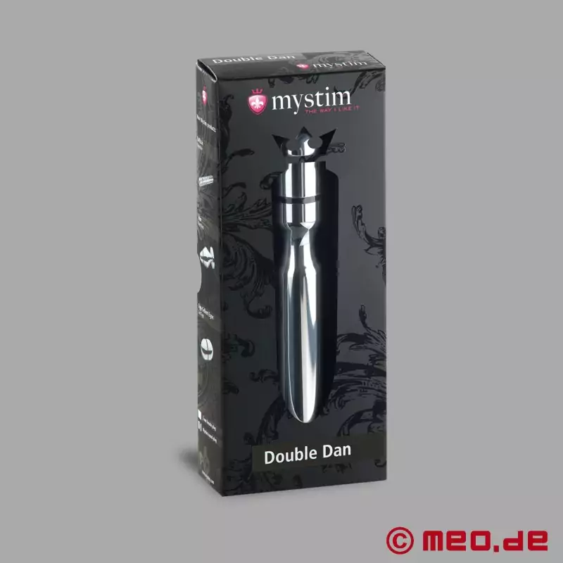 Vajinal veya anal elektrostimülasyon konusunda hala deneyimsiz misiniz? Elektriksel uyarıların penis, vajina veya anüsü tamamen yeni bir şekilde nasıl uyardığını ilk kez deneyimlemek ister misiniz? O halde Mystim'in Double Dan™ ürünü ilk adımlarınız için ideal elektrostimülasyon seks oyuncağıdır. İnce çapı ve basit tasarımı sayesinde, bu elektroşok dildo kullanımı özellikle kolaydır - hem vajinal hem de anal olarak.